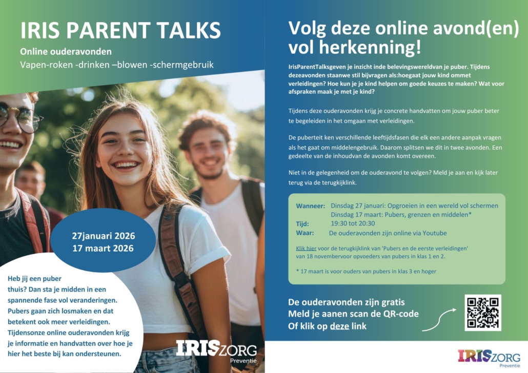 Dan sta je midden in een spannende fase vol veranderingen. Tijdens de online ouderavonden van Iris Parent Talks krijg je inzicht in de belevingswereld van je puber en praktische handvatten om hierbij te ondersteunen.
